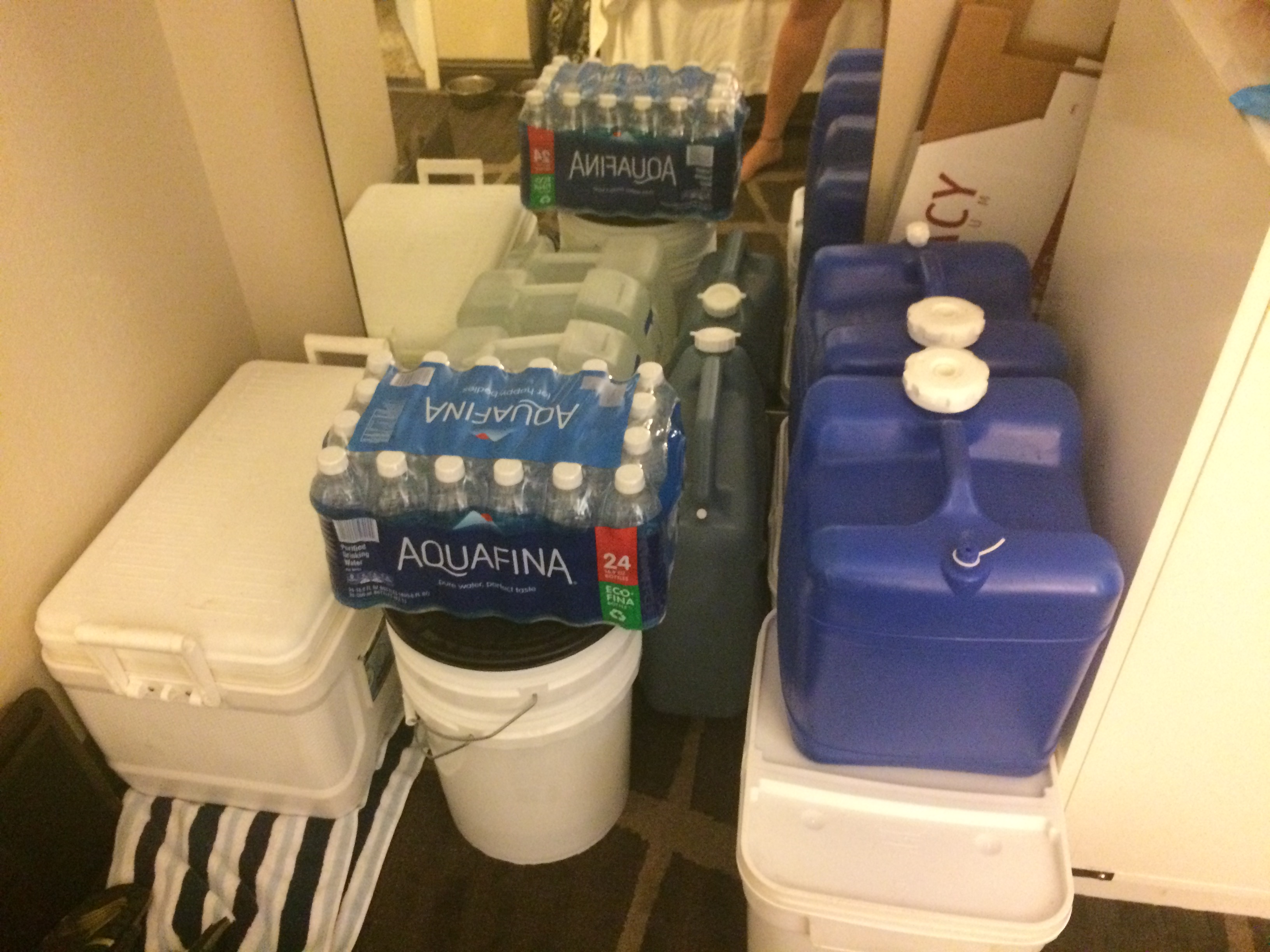 We packed up all of our personal items, choosing to leave only the tools and boat supplies in the boat. The fridge and freezer had to be emptied. We bought extra duffel bags for our belongings. We kept filling up water containers. We were running on the assumption that we’d have no boat to come home to, and that our city might be uninhabitable. It was a terrifying thought but we had to keep moving forward, keep busy, and do whatever we could to save whatever we could. I think I slept three hours in four days.