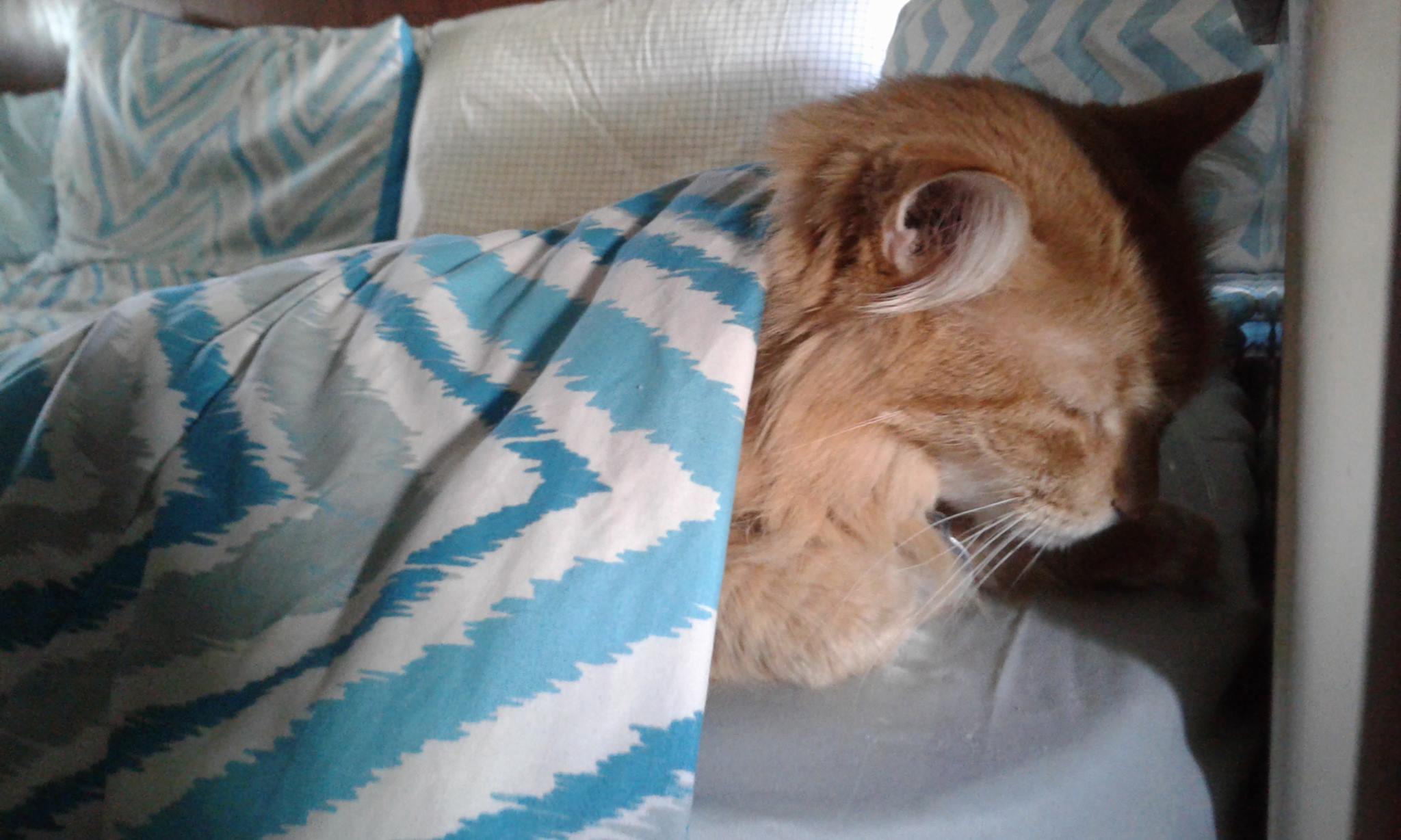 Rambo was still cowering in the bedroom so I covered him up, and gave him lots of TLC the rest of the afternoon.